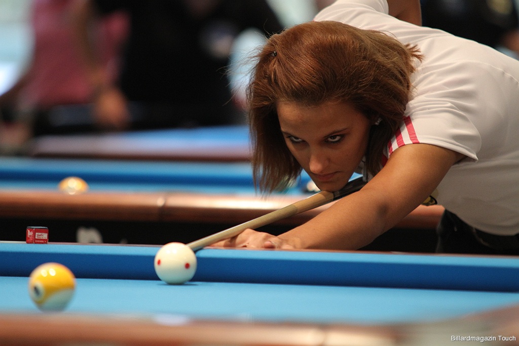Keinen guten Start erwischte Ilya gegen Chantal. Diese hatte sich nach ihrer Auftaktniederlage bis hierhin durchgekämpft. Nachdem Chantal eine vorentscheidende 3-0 Führung verspielte, kam Ilya noch einmal heran, glich später nach einem 1-3 noch zum 3-3 aus, vergab aber im letzten Spiel den Sieg, als er die Drei als Stecher spielte und an die Mittellochkante setzte. Damit stand die Deutsche 9-Ball Meisterin des Jahres 2011 im Viertelfinale.