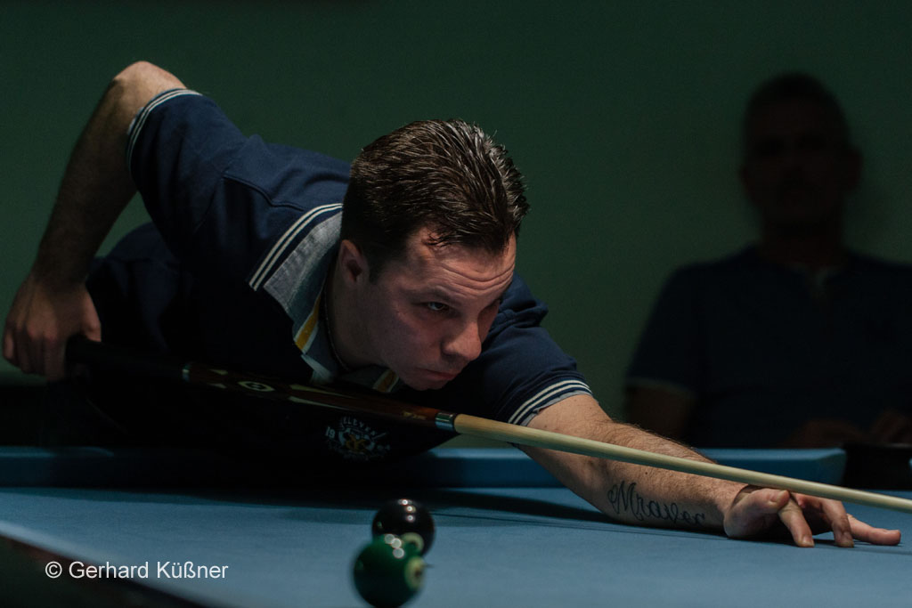 Und der Ersatzmann schlug sich gar nicht schlecht. Er unterlag im 14.1e dennoch seinem Gegenspieler Sami Nofal mit 103-125. Auch Jörg Garbe (6-8) und Daniel Jadanec mussten knappe Niederlagen hinnehmen. Harald Heller konnte sein 8-Ball gegen Dietmar Rech ebenso knapp mit 6-5 gewinnen.