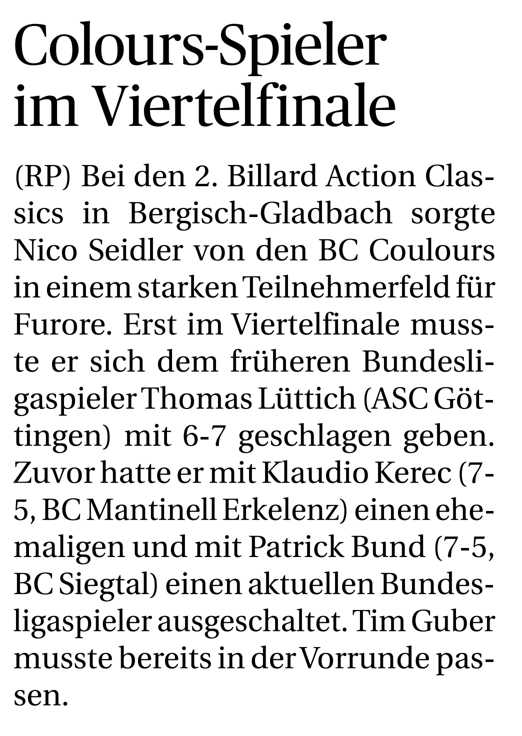 2. Billard Action Classics: Nico Seidler erst im Viertelfinale gestoppt