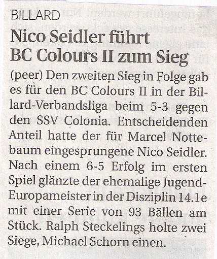 Billard: Nico Seidler führt BC Colours II zum Sieg - Rheinische Post 18.02.2016