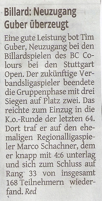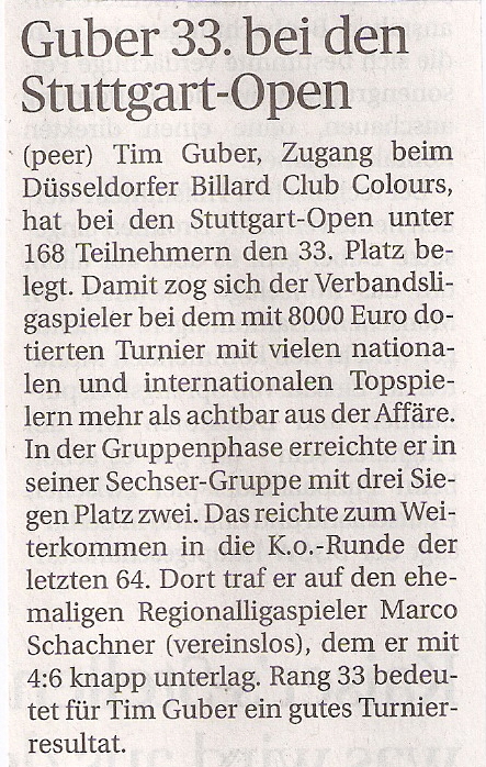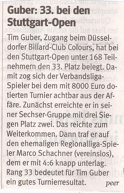 Billard: Neuzugang Guber überzeugt - Westdeutsche Zeitung 02.08.2016