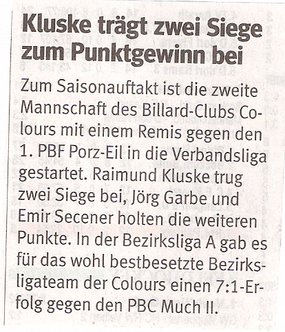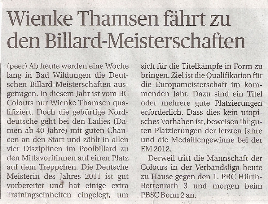 Billard Erfolg: Colours ganz stark - Westdeutsche Zeitung 07.06.2016